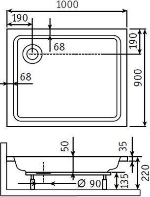 Душевой поддон RGW 90х100х3,5 см h22 STYLE , Прямоуг Ø90 FW5-8 (16180290-11)