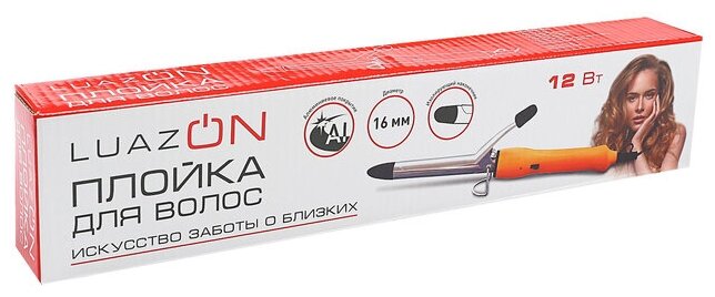 Плойка Luazon LW-15, 12 Вт, алюминиевое покрытие, d=16 мм, 180°С, оранжевая (арт. 3015659)