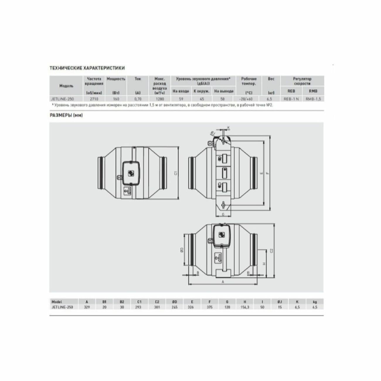 Вентилятор канальный Soler & Palau JETLINE-250 информация: