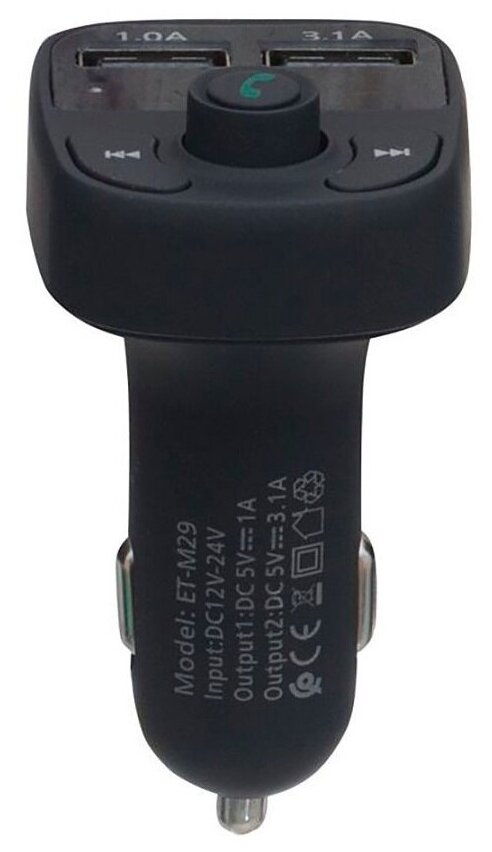 FM-трансмиттер Earldom ET-M29, Bluetooth, 2 USB, microSD, пластик, цвет: чёрный информация: