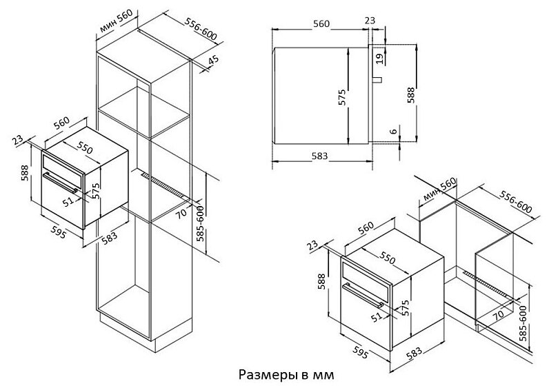 Духовой шкаф встраиваемый LEX EDM 077 C IV, 60 см, с конвекцией, механические ручки, объем 60 л, аналоговый таймер, телескопические направляющие.