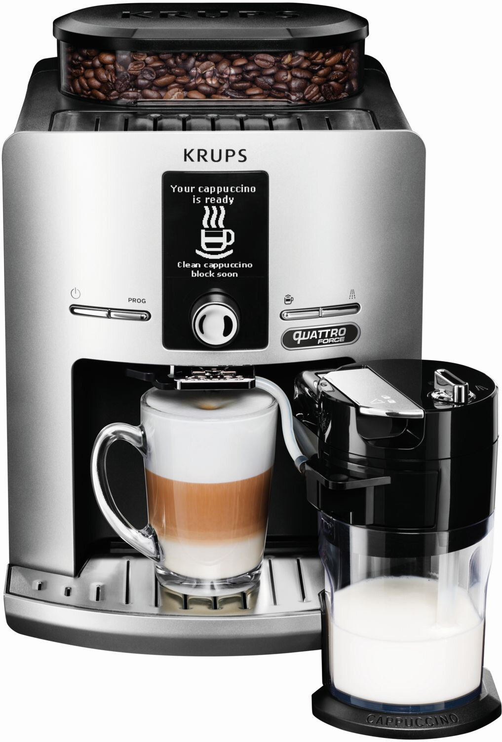 Автоматическая кофемашина Krups Essential EA810870 с LED индикацией, паровое сопло для пены, металлические жернова