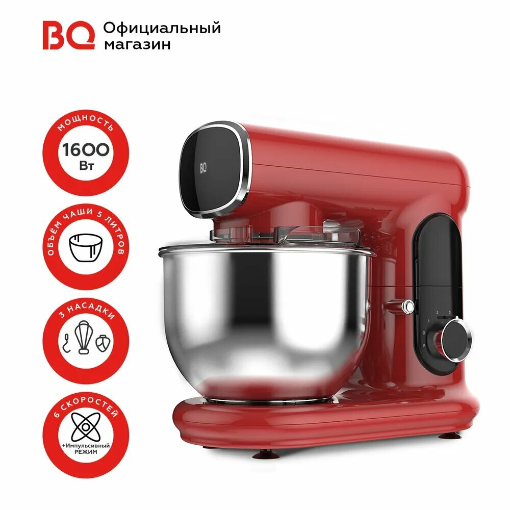 Планетарный миксер с чашей BQ MX822 Красный / Мощность 1600 Вт / 6 скоростей 8 244 ₽