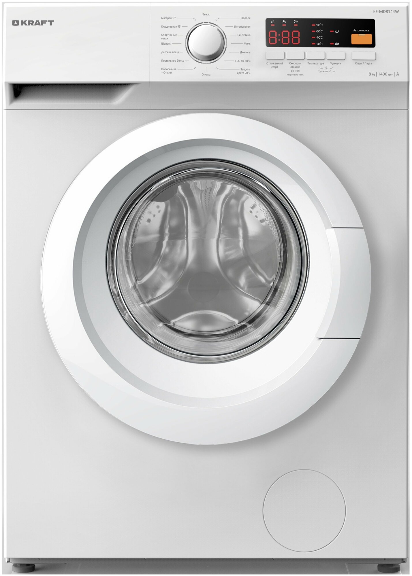 Стиральная машина KRAFT KF-MD 8144 W белый, отдельностоящая, 60 см, 1400 об/мин, 15 программ, загрузка до 8 кг информация: