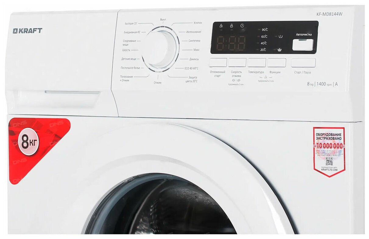 10 цен на Стиральная машина KRAFT KF-MD 8144 W белый, отдельностоящая, 60 см, 1400 об/мин, 15 программ, загрузка до 8 кг
