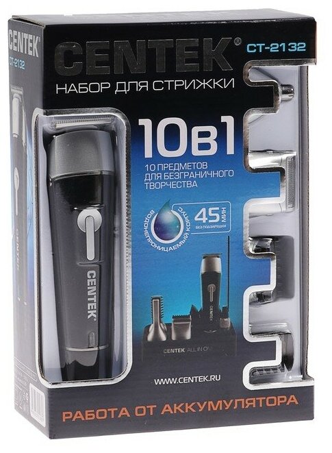 Набор для стрижки Centek CT-2132, 10 предметов, водонепроницаемый корпус, черный информация: