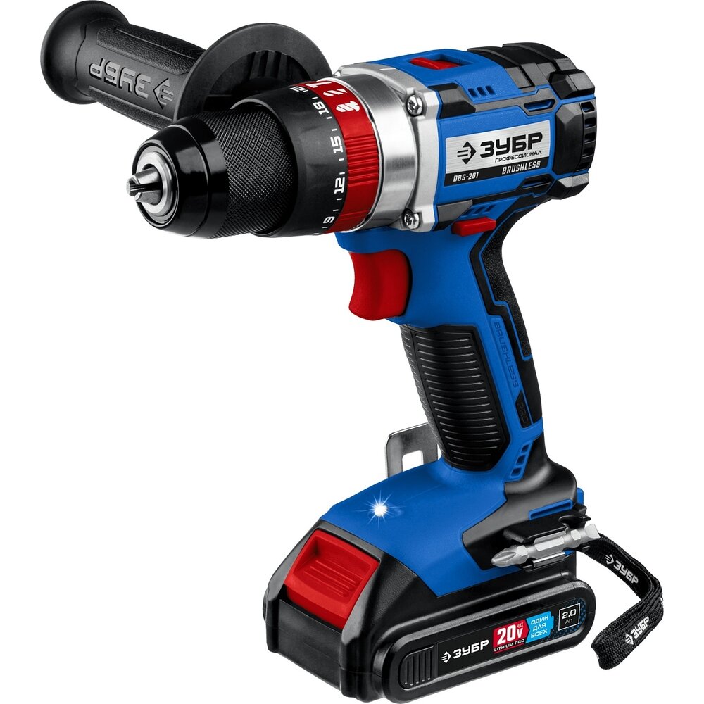 10 цен на Бесщеточная ударная дрель-шуруповерт ЗУБР Профессионал 20В 2 АКБ 2Ач DBS-201-22