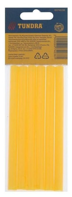 Клеевые стержни тундра, 7 х 100 мм, желтые, 6 шт.. В наборе 1шт. информация: