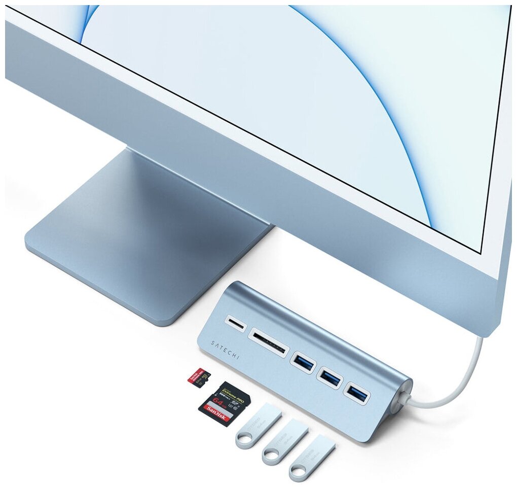 10 цен на USB-концентратор Satechi Aluminum USB 3.0 Hub & Card Reader ST-TCHCRB (Blue)