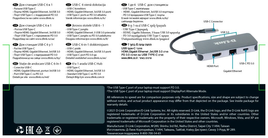 Док-станция с разъемом D-LINK USB Type-C DUB-2335/A1A информация: