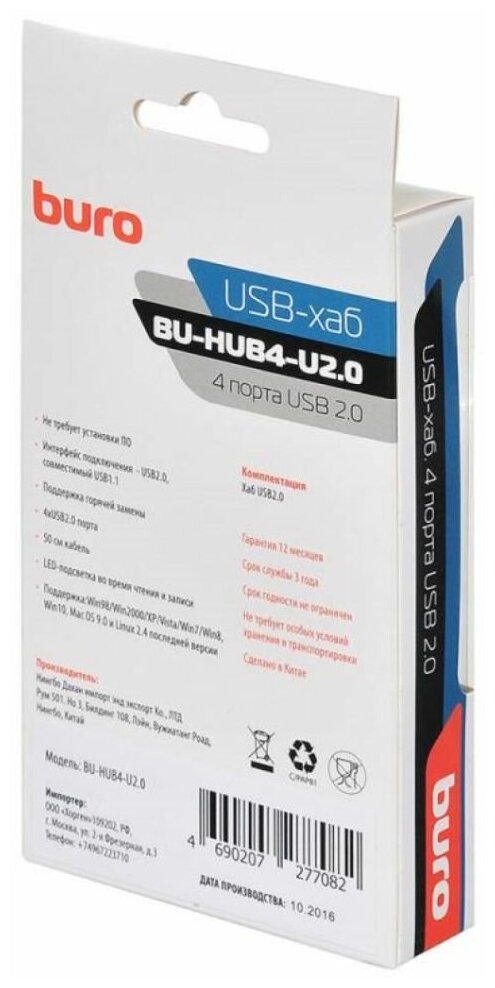 10 цен на USB-Концентратор Buro USB 2.0 4порт. черный