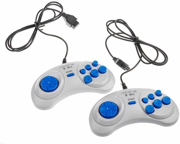 Джойстики 8-bit серые с синими кнопками / Dendy / Комплект 2 шт. для Денди / Узкий разъём 9 pin