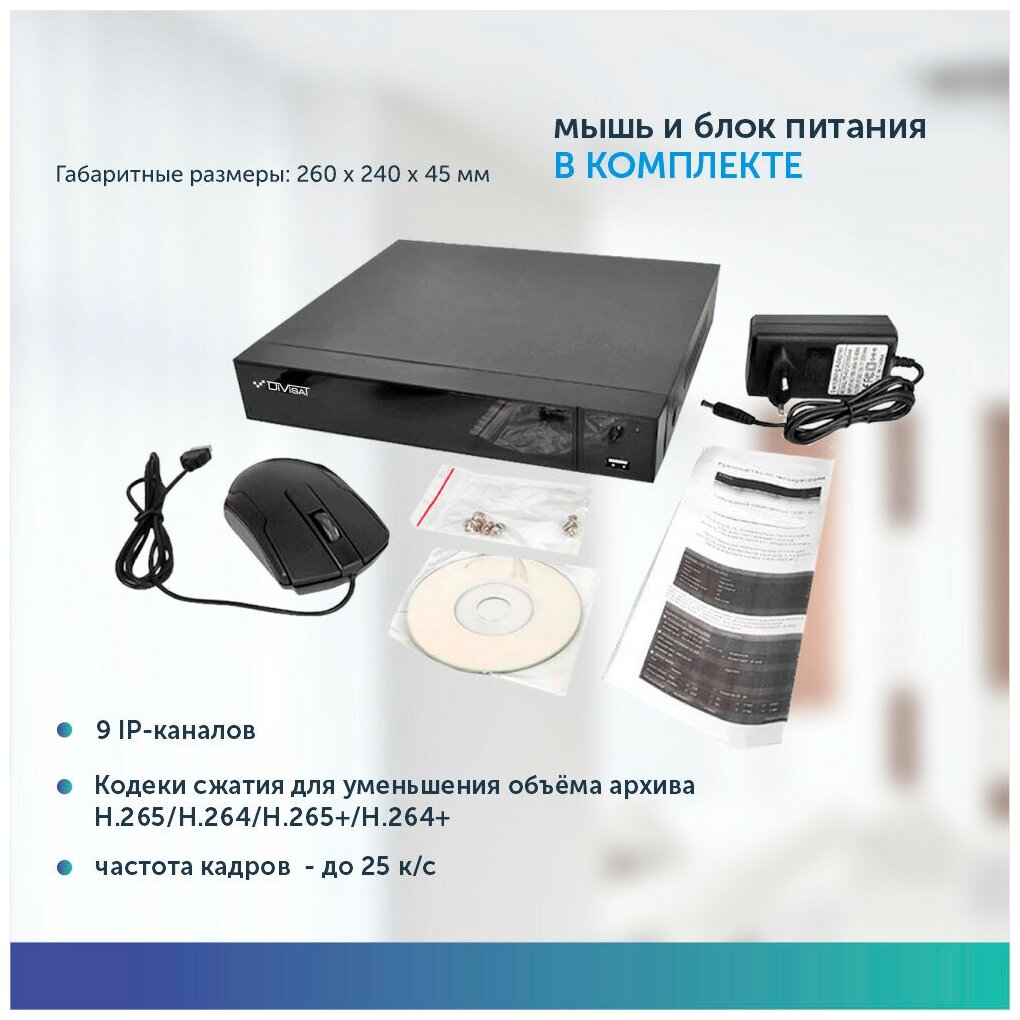 Видеорегистратор сетевой для видеонаблюдения охранный 9 каналов IP до 5 Mpix информация: