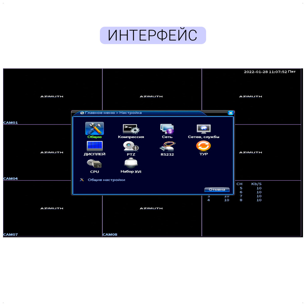 Видеорегистратор гибридный AZIMUTH AZ08NX 8-канальный 1080N информация: