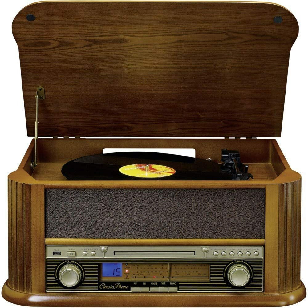 Виниловый проигрыватель с металлической трубой Audio-Retro MI1906CD, радиоприёмник FM, CD, USB разъёмы, Bluetooth
