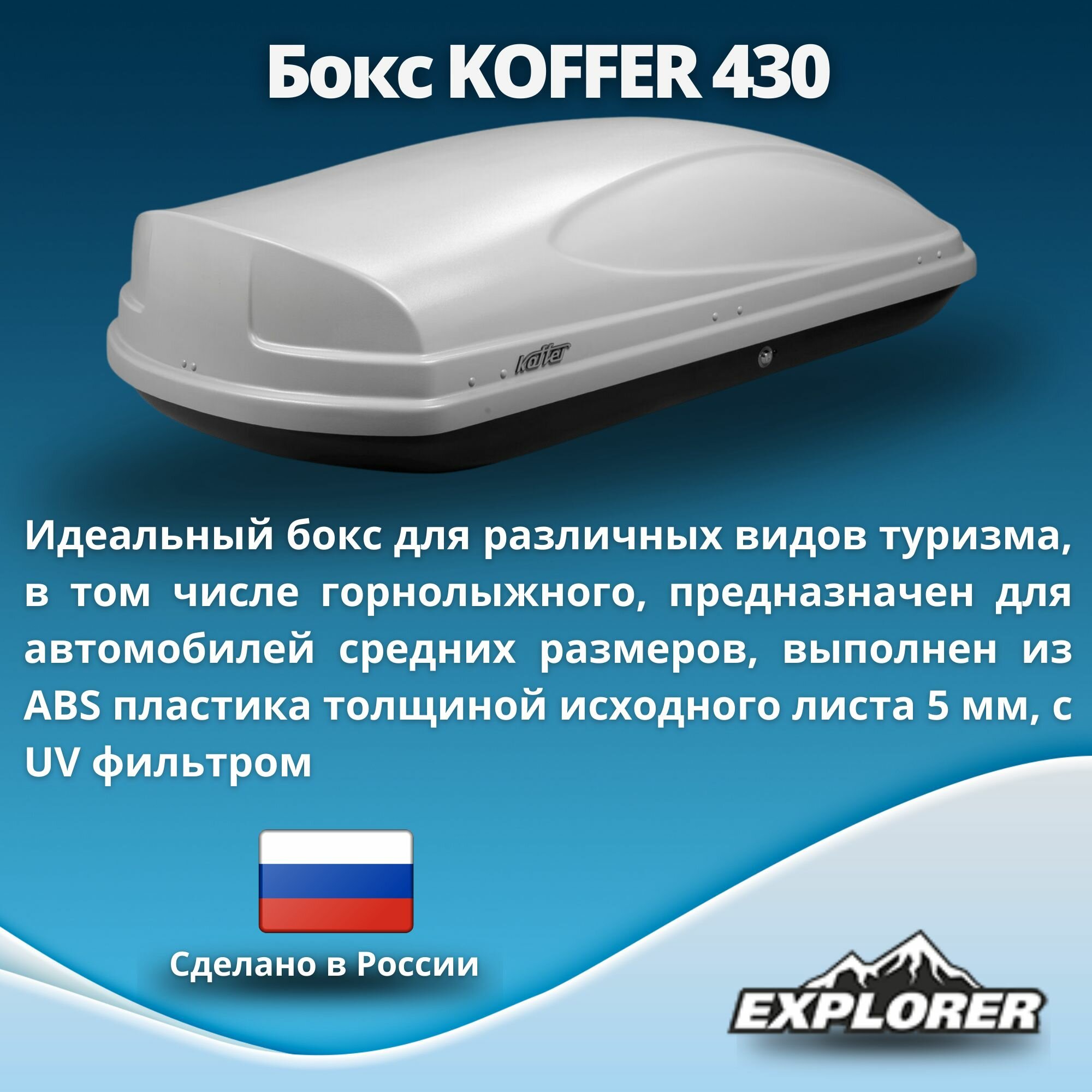 Автомобильный бокс (багажник на крышу) Koffer Sport 1860х850х400 белый глянец (duo open) 430л