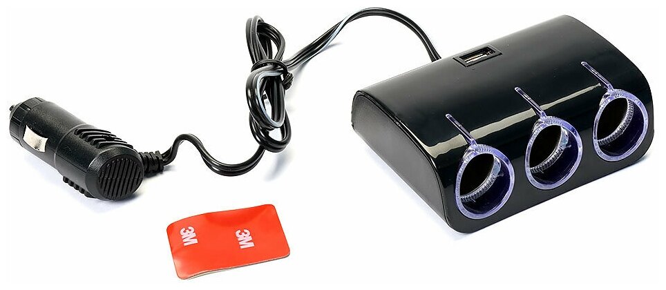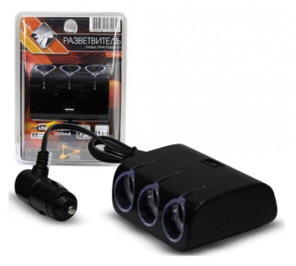 Отзывы на Разветвитель прикуривателя 3-х гнездовой 12-24V 1USB NOVA BRIGHT 44466