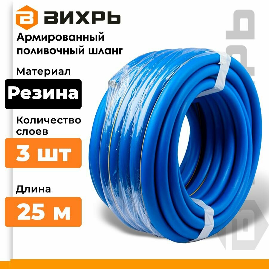 Шланг армированный Вихрь резиновый, 19х25мм, синий с жёлтой полоской, 25м