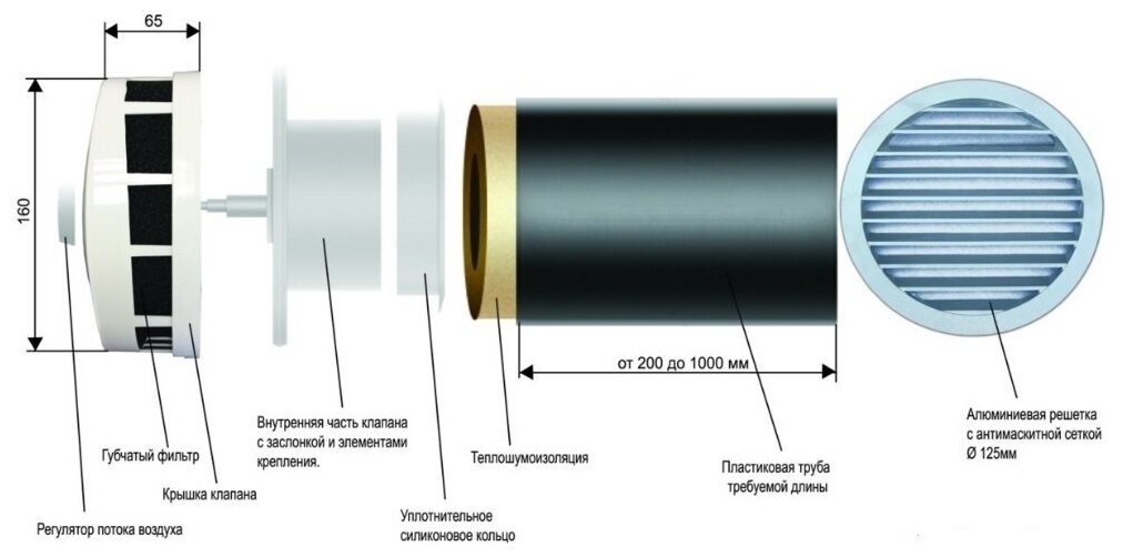 Клапан Инфильтрации Воздуха Airone КИВ 125 0.5м с антивандальной решеткой (комплект 5шт) информация: