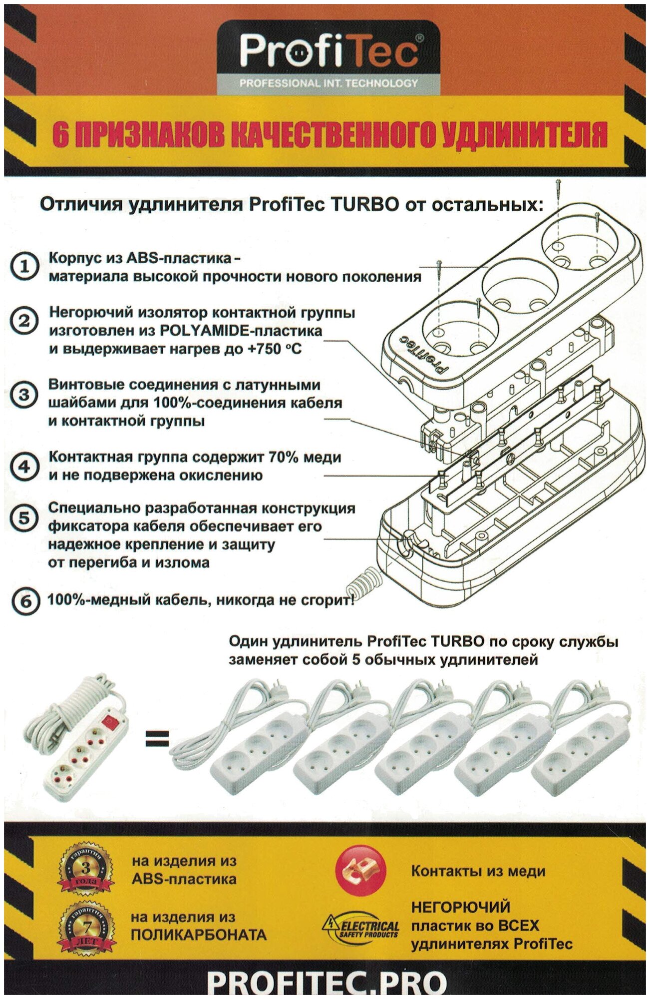 ProfiTec Бытовой удлинитель Profitec Сетевой шнур TURBO 1 гнездо розетка, с заземлением, длина 2,3,5,10м, 16А, 100% медь