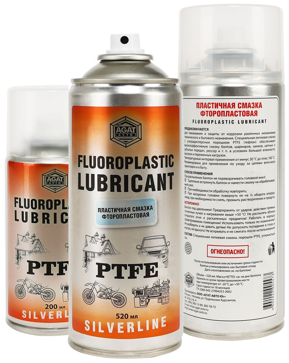 Фторопластовая Пластичная Смазка (Аэрозоль) (0.2L) AGAT Avto арт. SL0313 информация: