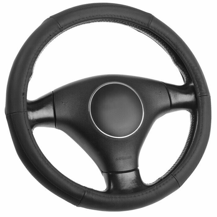 Оплетка на руль универсальная из экокожи «CARBON» М 37-39 см (чёрная, строчка чёрная) belais #21608