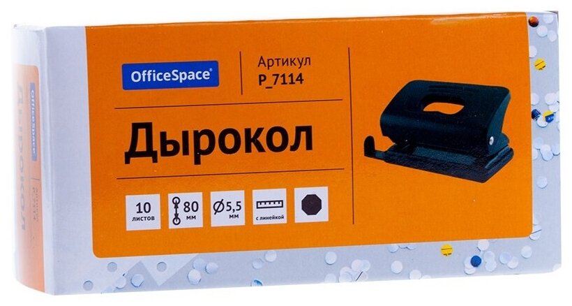 10 цен на канц_дыроколы_officespace 10л., пластиковый, черный, с линейкой D13004