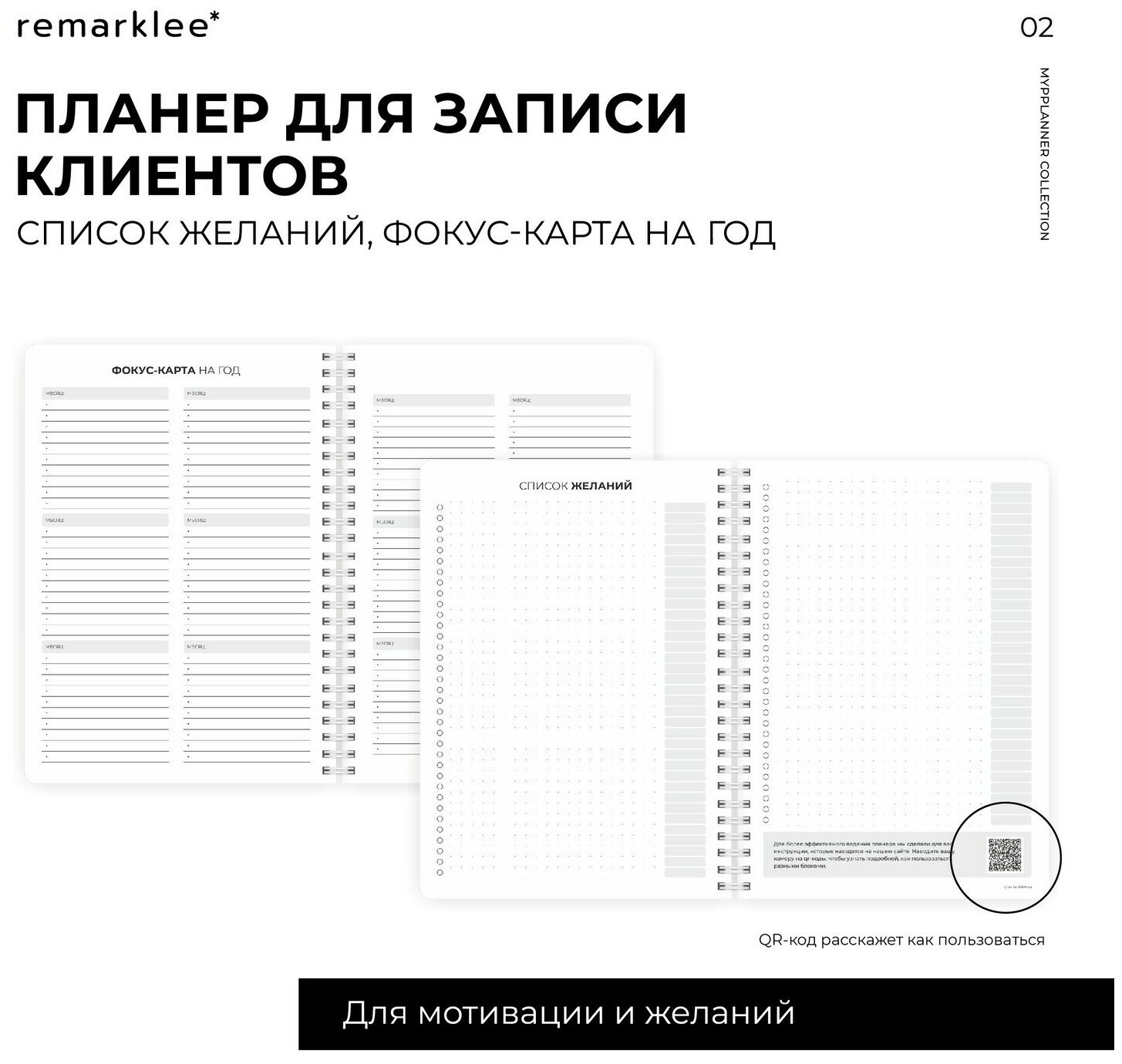 Еженедельник планер для записи клиентов Remarklee "Просто начни" недатированный, А5, 83 листа информация: