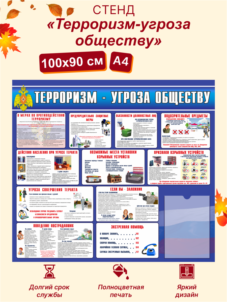 Отзывы на Стенд Терроризм - угроза обществу, стенды для школы, 1000х900 мм