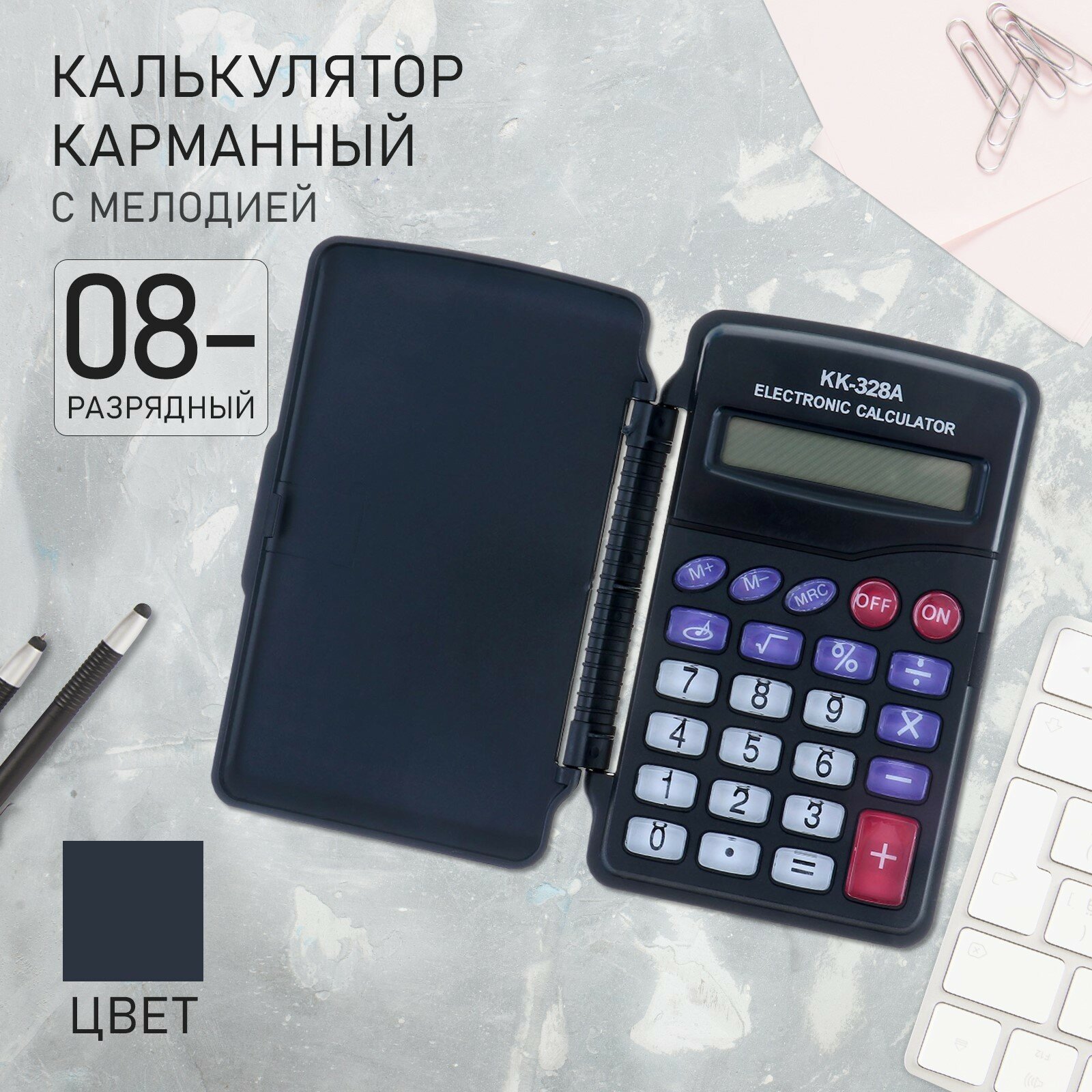 Калькулятор карманный, 8-разрядный, KK-328, с мелодией информация: