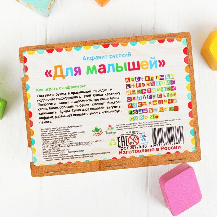 Тимбергрупп Алфавит русский «Пазл», деревянные фрагменты, рисунок наклеен, размер 1 пазла: 4,5 × 4,5 см информация: