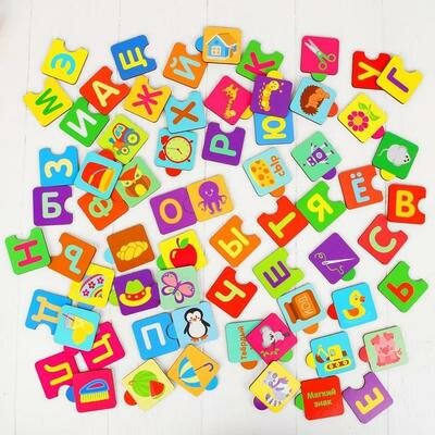 Алфавит русский Пазл, деревянные фрагменты, рисунок наклеен, размер 1 пазла: 4,5 ? 4,5 см тимбергр . информация: