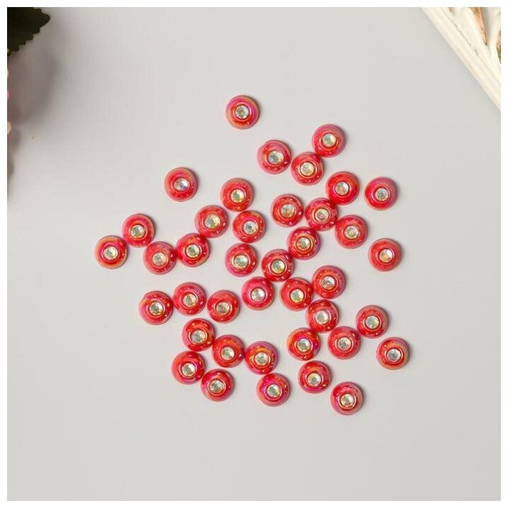Декор для творчества пластик "Полужемчужина со стразой красный" набор 40 шт 1х1х0,5 см информация:
