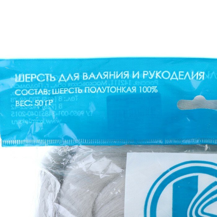 Камтекс Шерсть для валяния 100% полутонкая шерсть 50 гр (168, сер. св.) информация: