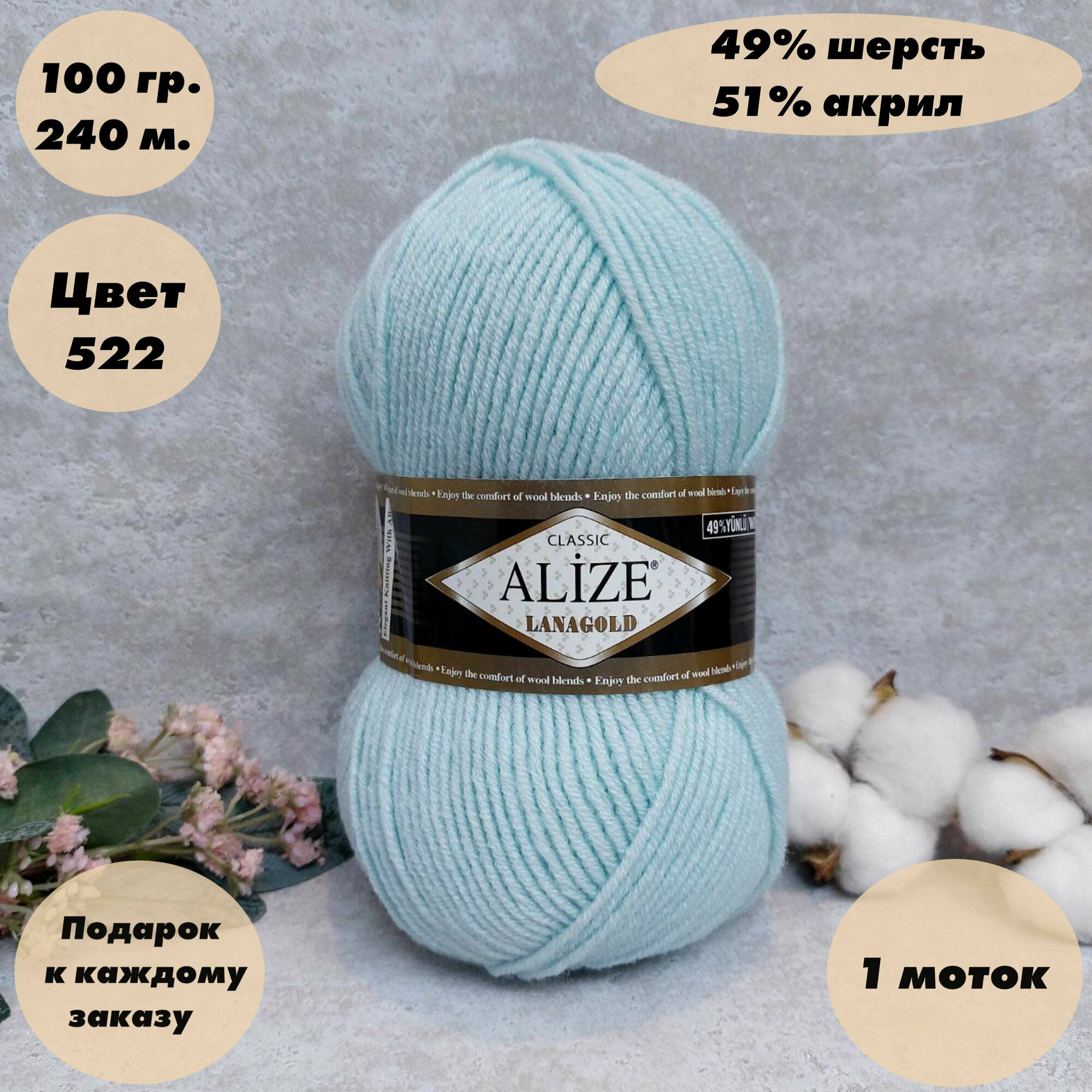 Пряжа ALIZE "Lanagold", 51% акрил, 49% шерсть, 240 м*100 г, 40, голубая, 1 шт