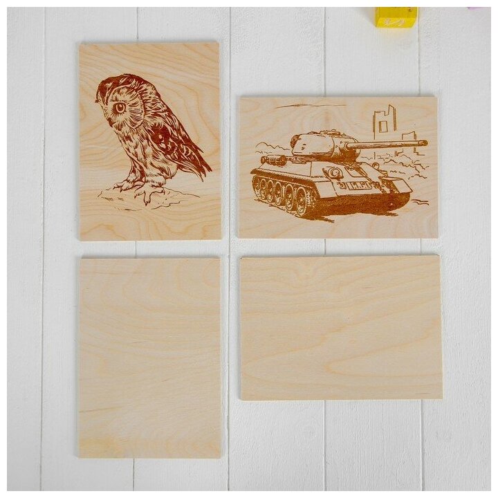 4шт Заготовки деревянные для выжигания "Сказочные мотивы",