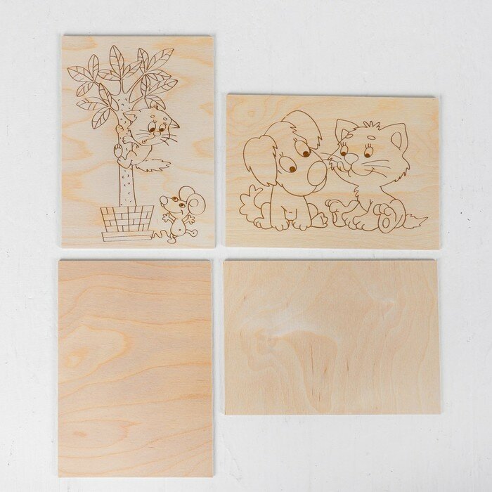 4шт Заготовки деревянные для выжигания "Сказочные мотивы",