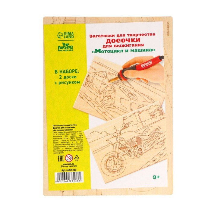 10 цен на Досочки для выжигания "Мотоцикл и машина"./В упаковке шт: 1