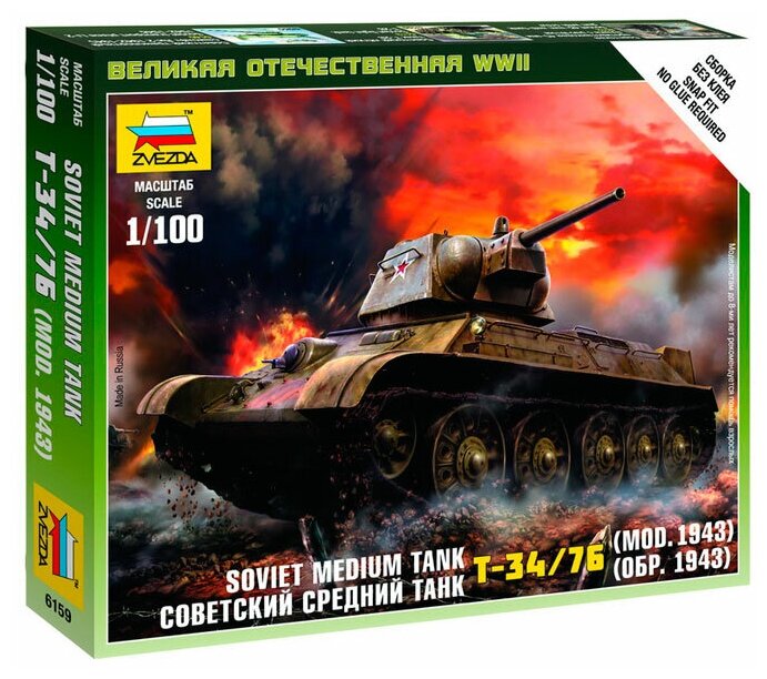Модель для сборки Звезда Танк "Средний советский Т-34/76 образца 1943", масштаб 1:100 (6159) информация: