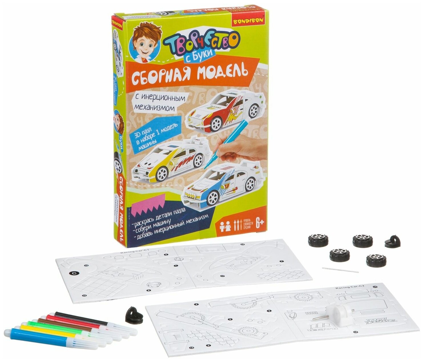 Отзывы на Сборная 3D модель BONDIBON для раскрашивания, с инерц мех., гоноч машина, арт. HX154882-3 (ВВ1668)
