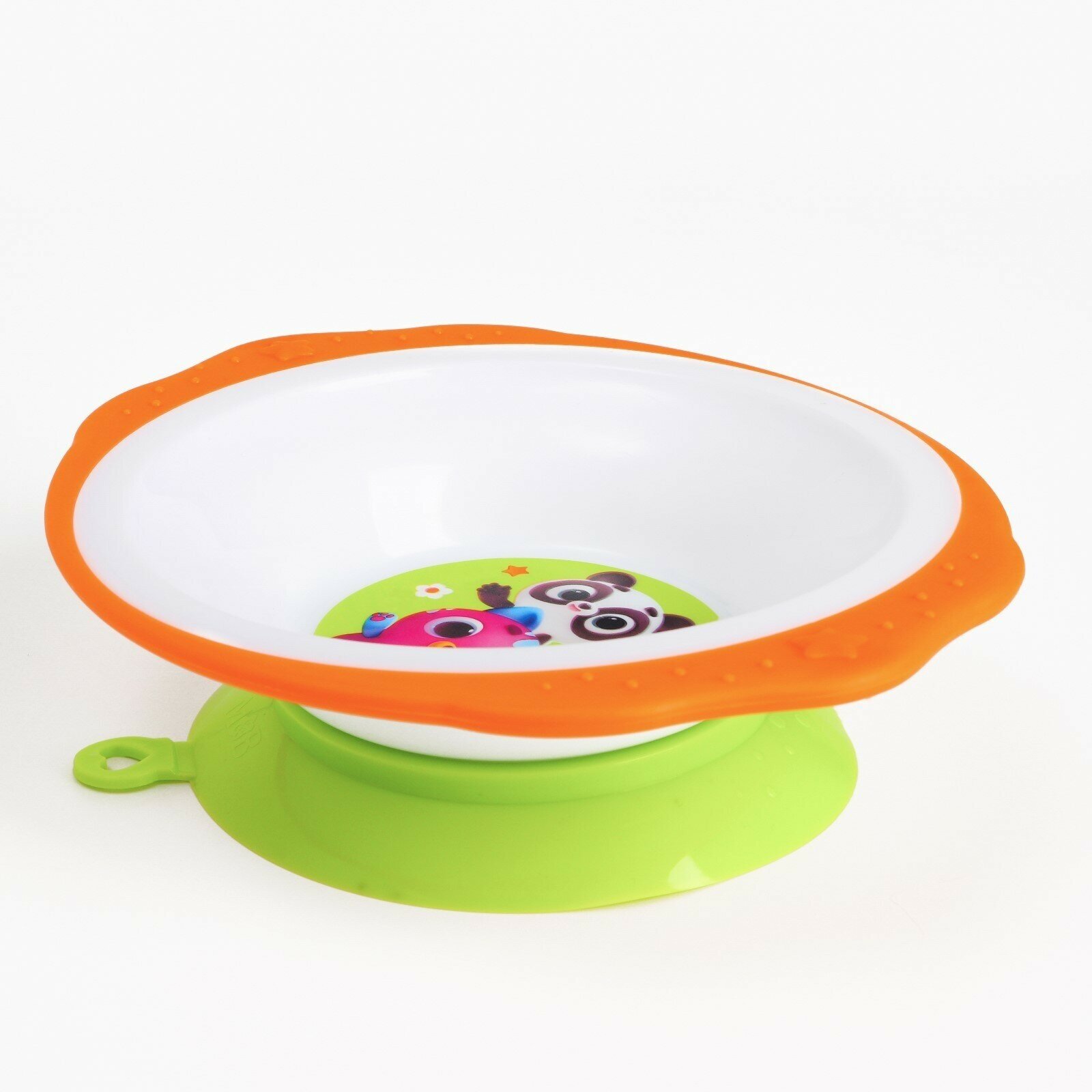 Набор детской посуды «Друзья», 3 предмета: тарелка на присоске, крышка, ложка, цвет зелёный