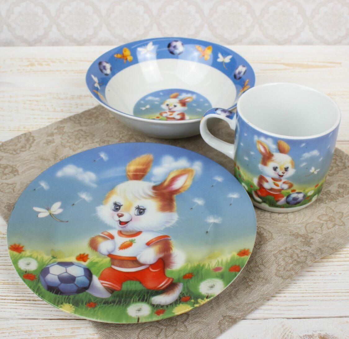 Набор детской посуды Доляна "Заяц футболист", 3 предмета: кружка 230 мл, миска 400 мл, тарелка 18 см информация: