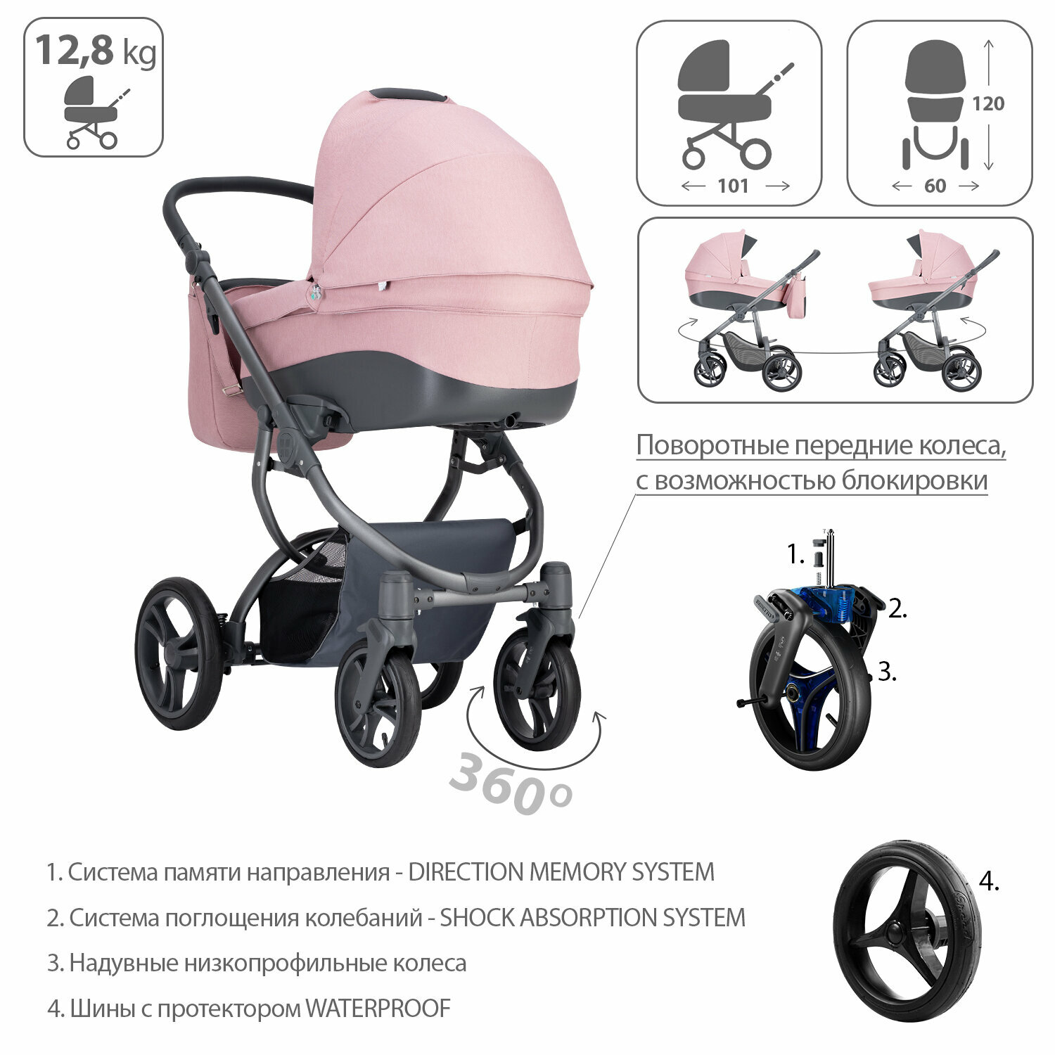 Детская коляска 2 в 1 Bebetto Holland 07_GRF информация: