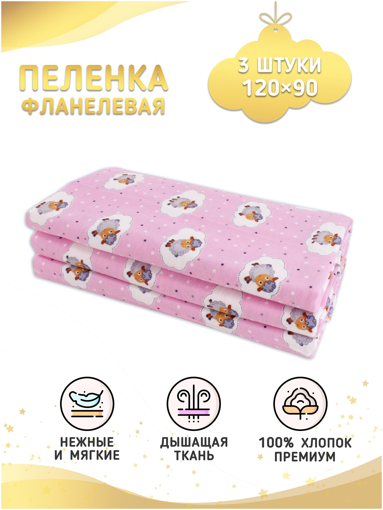 Про Сон Пеленка фланелевая, 3 шт. в упаковке, овечки на розовом информация: