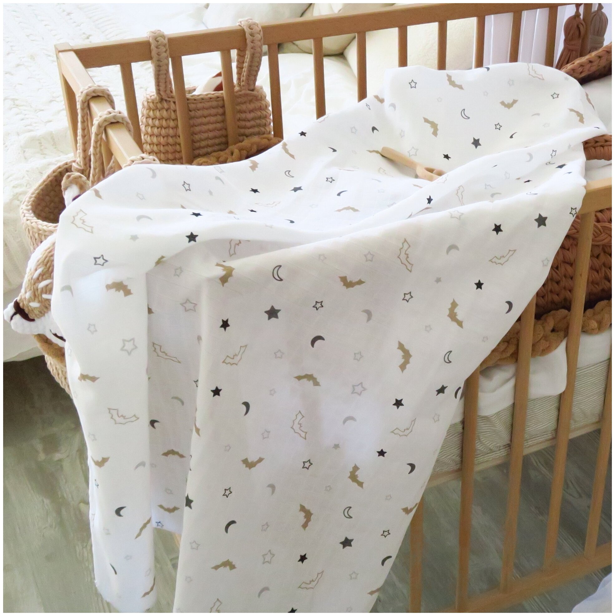 Пеленка из муслина, рис.: "Созвездие", 90 х 130 см., 100% Хлопок / Пелёнка текстильная