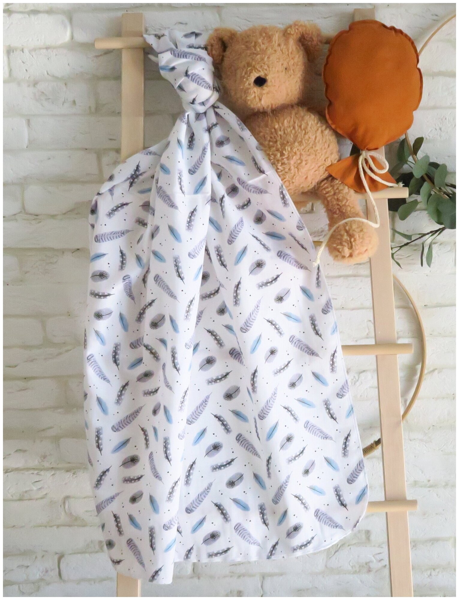 Отзывы на Пеленка из муслина, рис.: "Пёрышки", 90 х 130 см., 100% Хлопок / Пелёнка текстильная