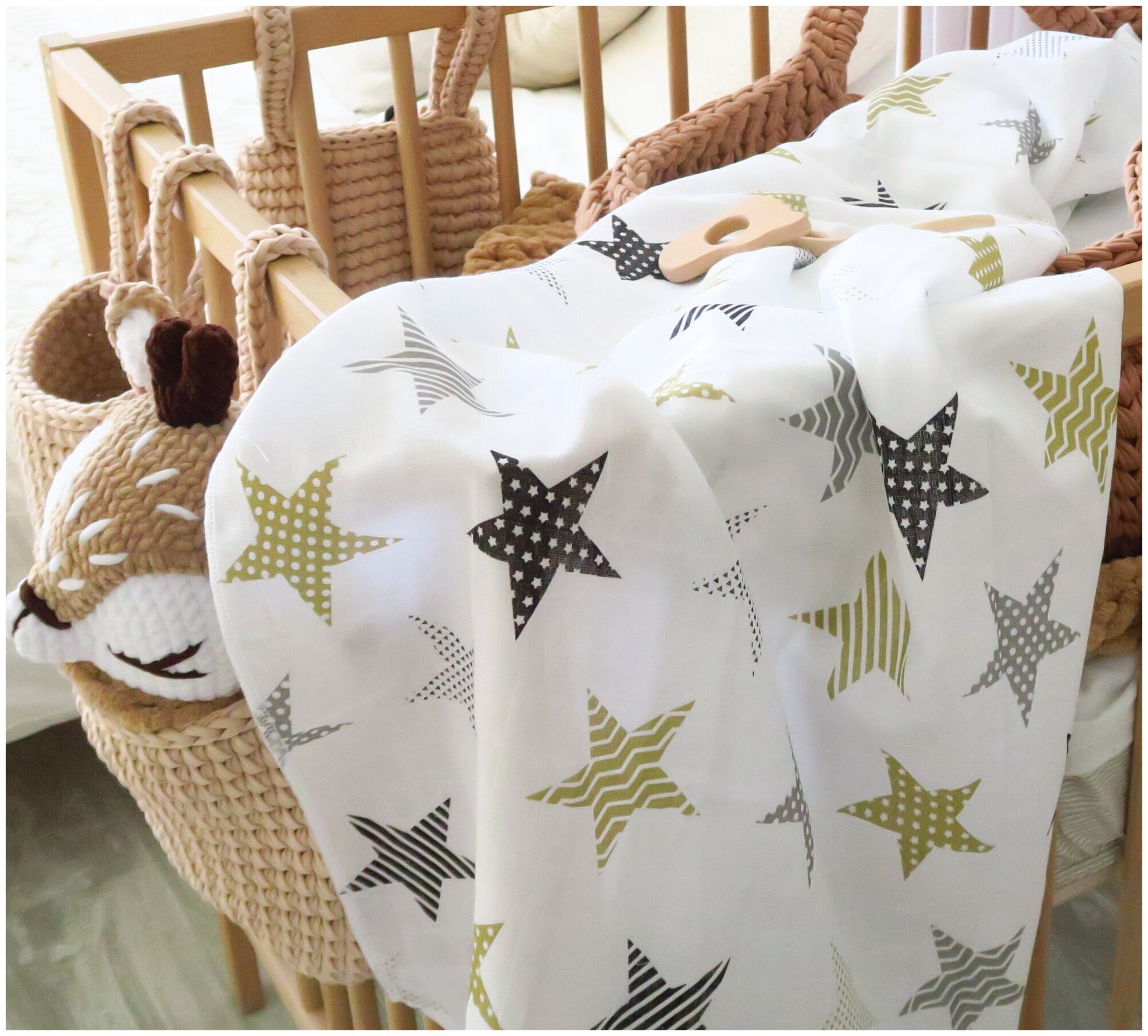Пеленка из муслина, рис.: "Звёзды", 90 х 130 см., 100% Хлопок / Пелёнка текстильная информация: