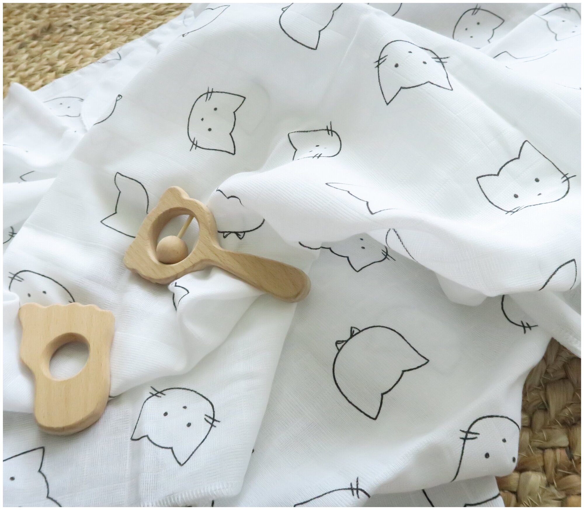 10 цен на Пеленка из муслина, рис.: "Котики", 90 х 130 см., 100% Хлопок / Пелёнка текстильная