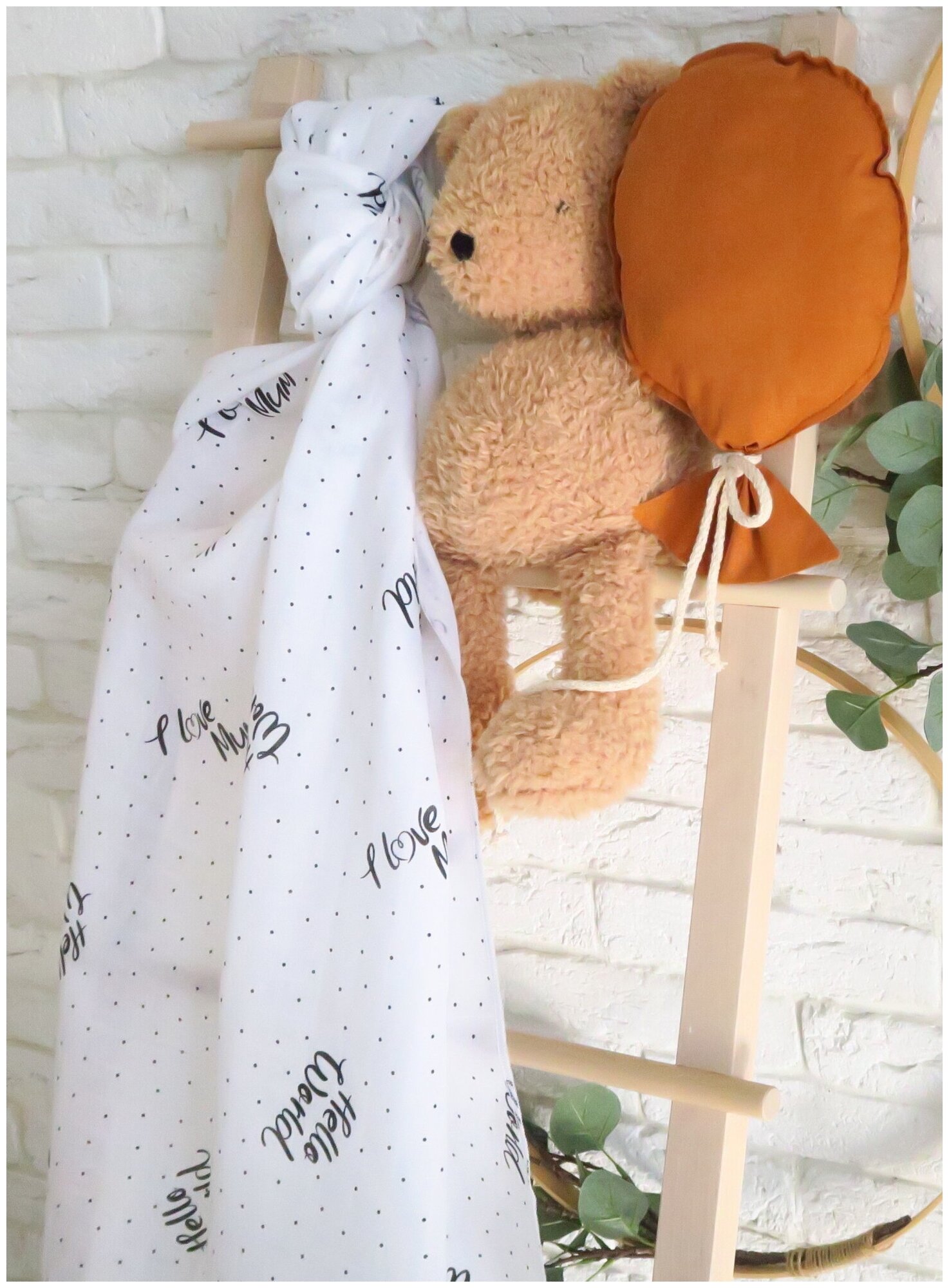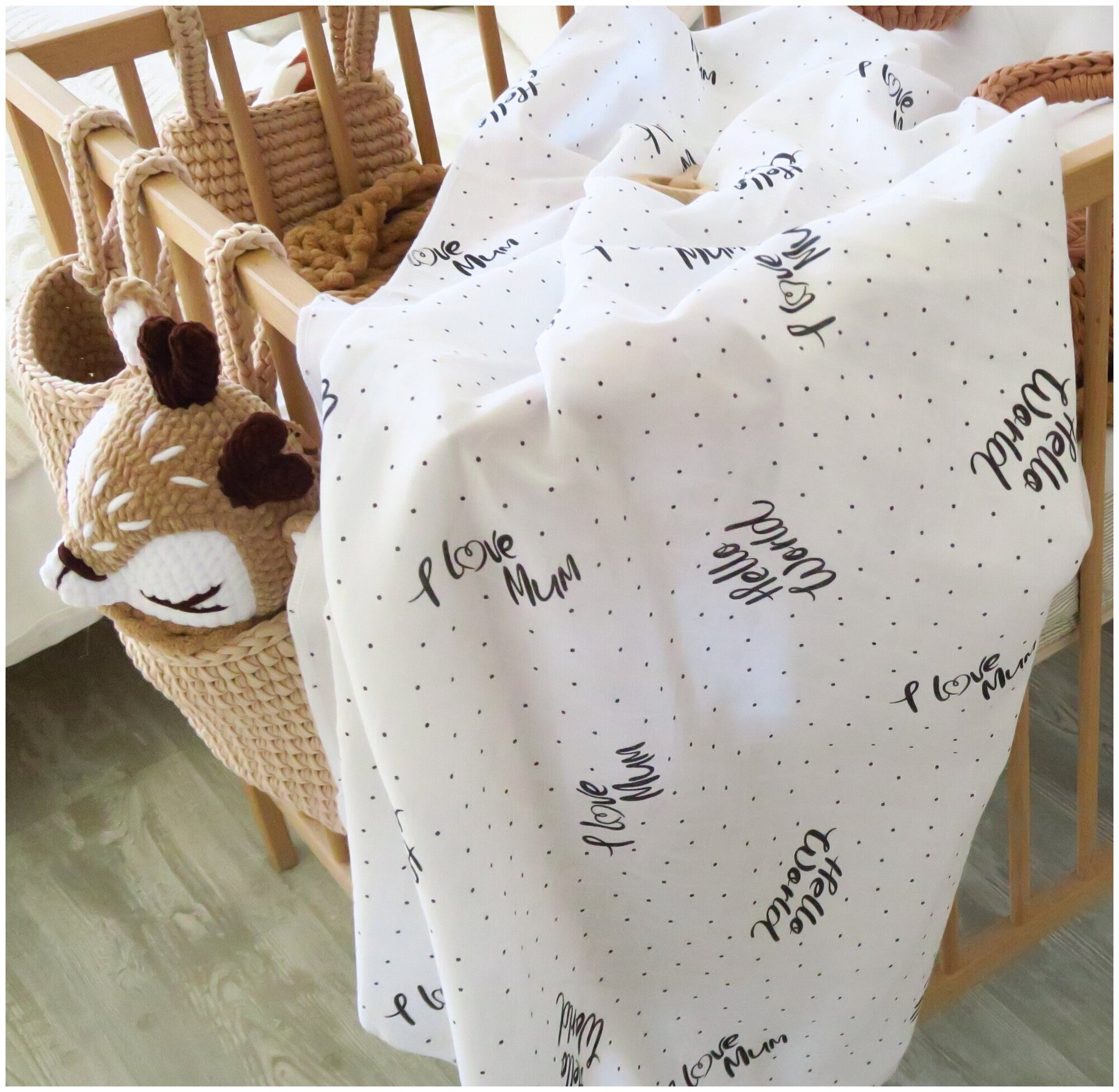 Пеленка из муслина, рис.: "I Love Mum", 90 х 130 см., 100% Хлопок / Пелёнка текстильная информация: