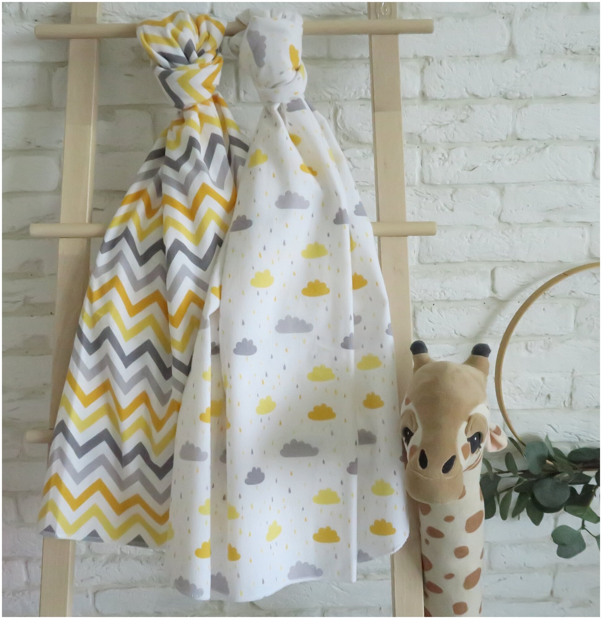 Пеленка текстильная многоразовая непромокаемая хлопок махра клеенка 68х80 см Owl&EarlyBird, набор 2 штуки